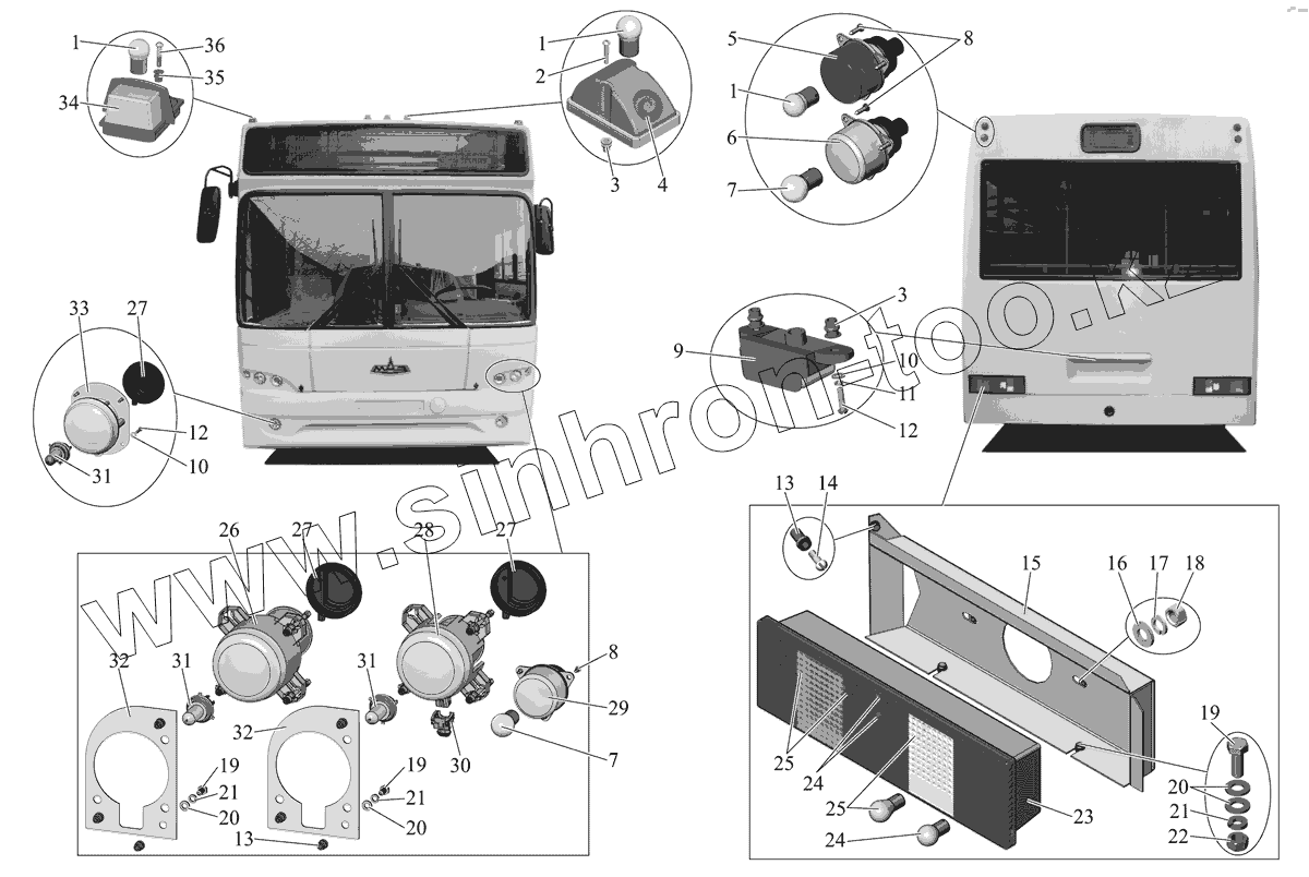 Каталог запасных частей к технике: АМАЗ МАЗ-105 (2011). Установка наружной светотехники для МАЗ 105465