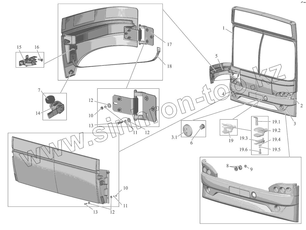Каталог запасных частей к технике: АМАЗ МАЗ-105 (2011). Установка облицовки передка 105460-5300020