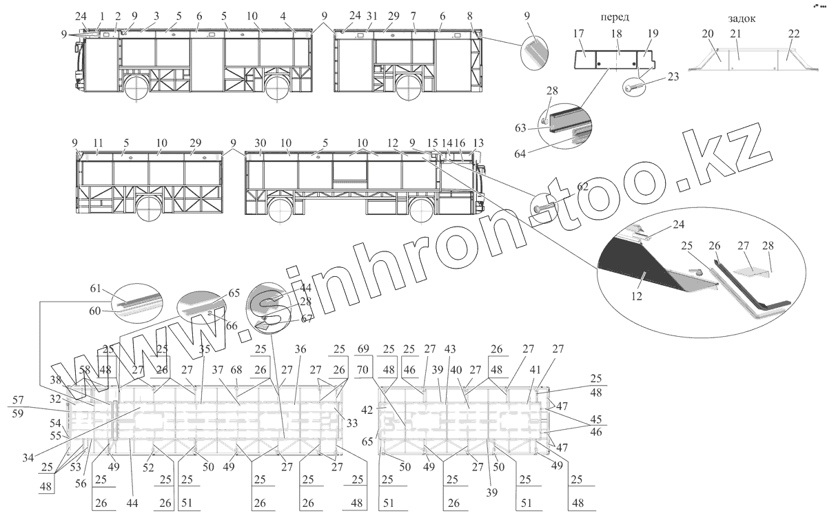 Каталог запасных частей к технике: АМАЗ МАЗ-105 (2011). Установка панелей потолка