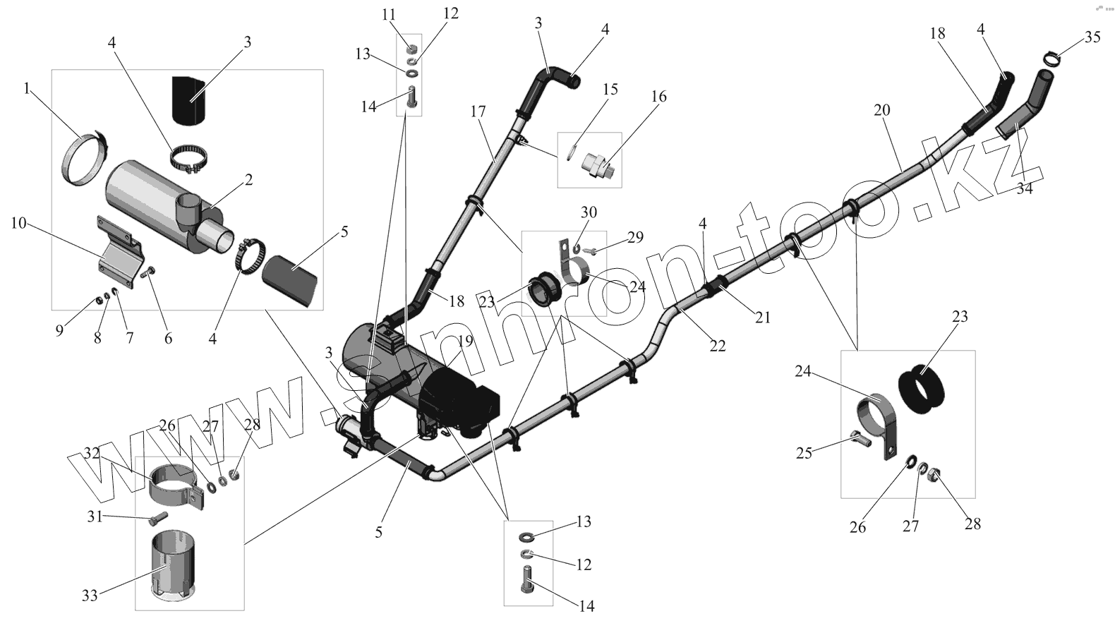 Каталог запасных частей к технике: АМАЗ МАЗ-105 (2011). Установка подогревателя DBW 300.66