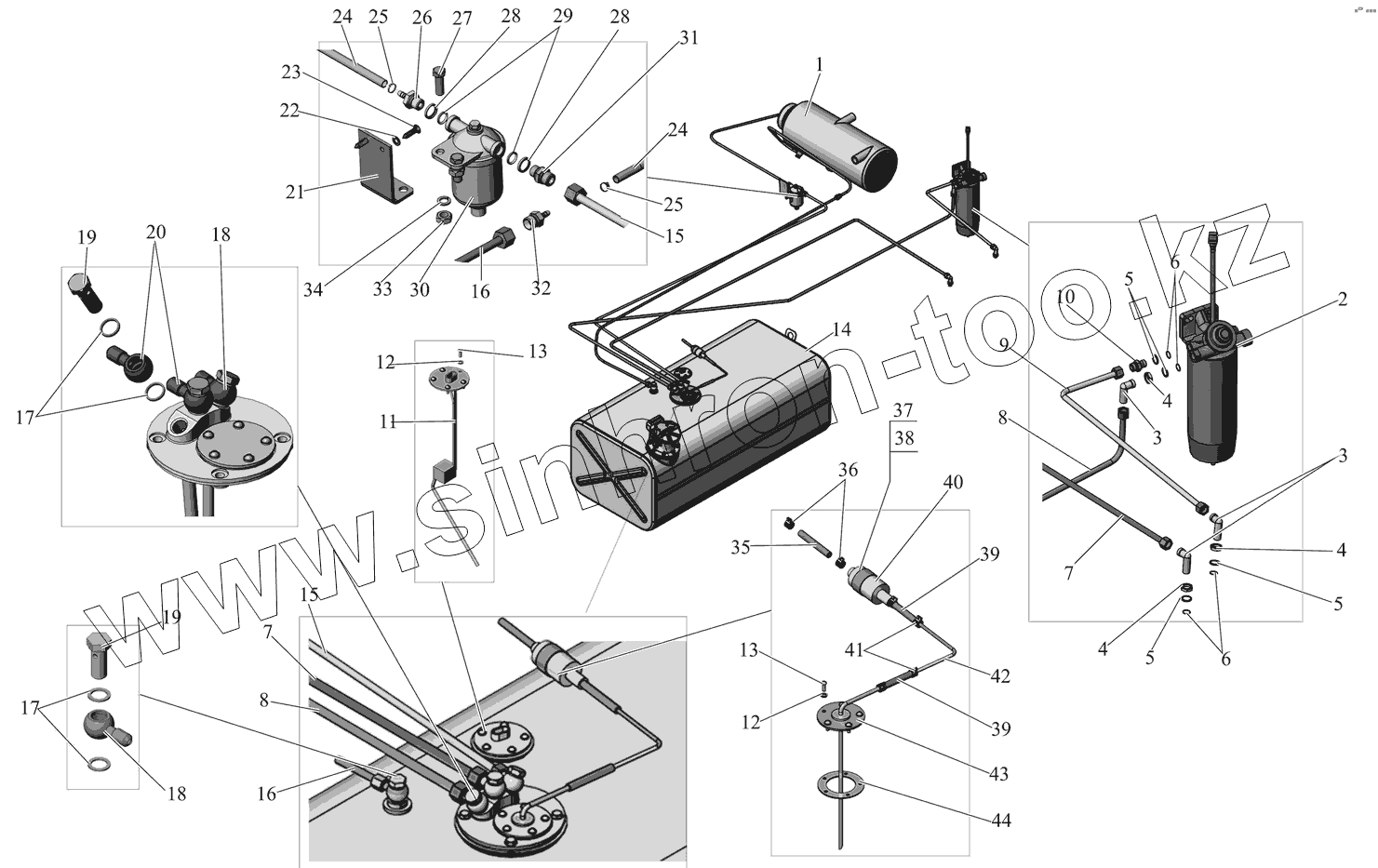 Каталог запасных частей к технике: АМАЗ МАЗ-105 (2011). Установка топливопроводов (ПЖД Hydronic L30)