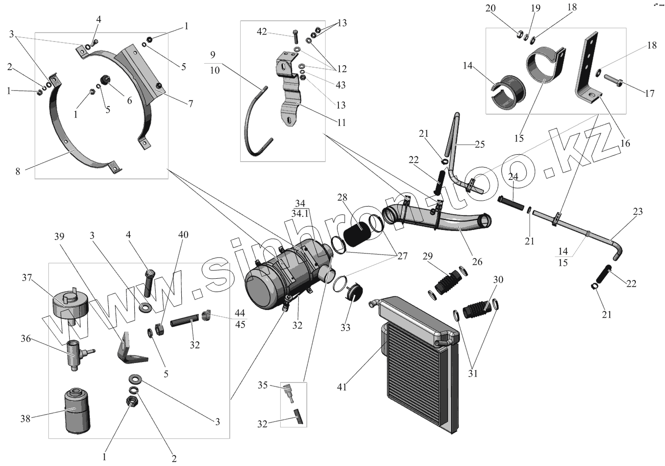 Каталог запасных частей к технике: АМАЗ МАЗ-105 (2011). Установка воздухоочистителя и охладителя наддува 105065-1100020