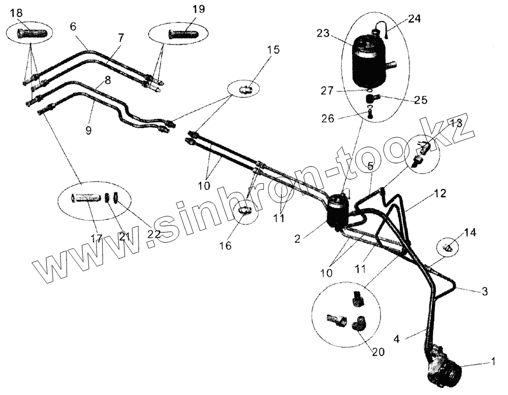 Каталог запасных частей к технике: АМАЗ МАЗ-107. Рулевое управление МАЗ-103, установка насоса, установка трубопроводов