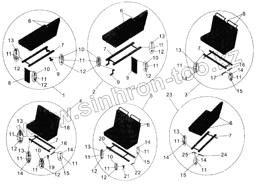 Каталог запасных частей к технике: АМАЗ МАЗ-107. Установка сидений (двухместные сиденья)