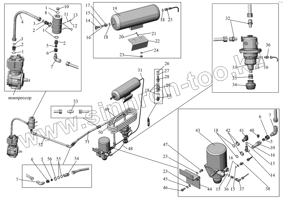 Каталог запасных частей к технике: АМАЗ МАЗ-107 (2011). Блок подготовки сжатого воздуха 107467-3512001