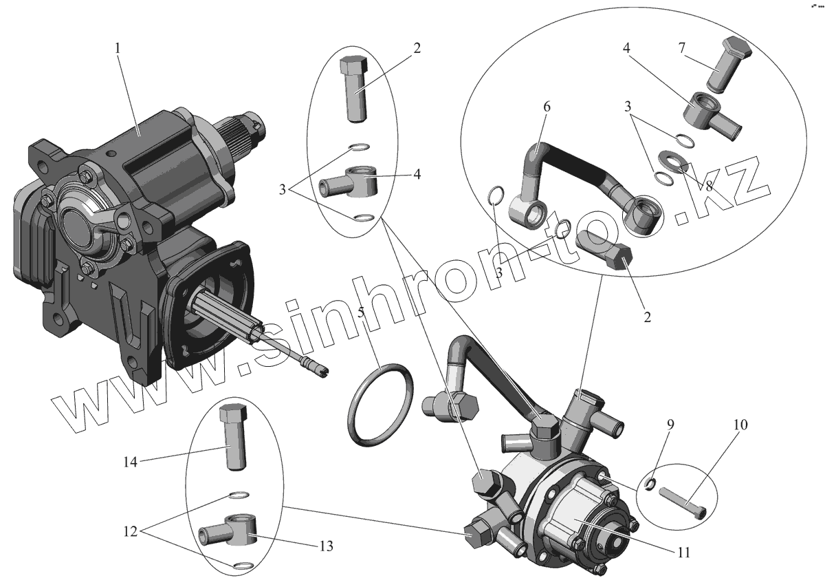 Каталог запасных частей к технике: АМАЗ МАЗ-107 (2011). Механизм рулевой с распределителем 104-3400008-01