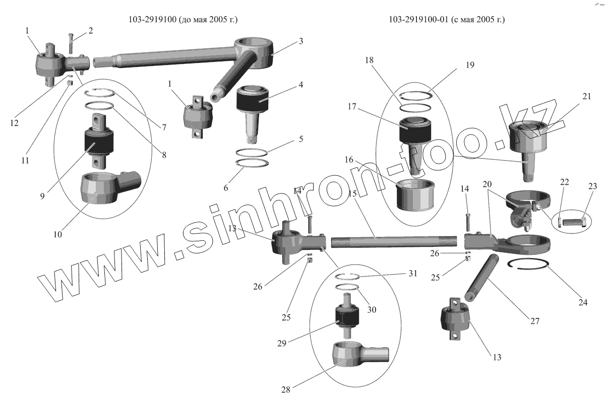 Каталог запасных частей к технике: АМАЗ МАЗ-107 (2011). Штанга 103-2919100