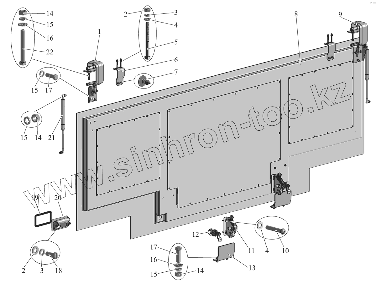 Каталог запасных частей к технике: АМАЗ МАЗ-107 (2011). Установка крышки люка моторного отсека