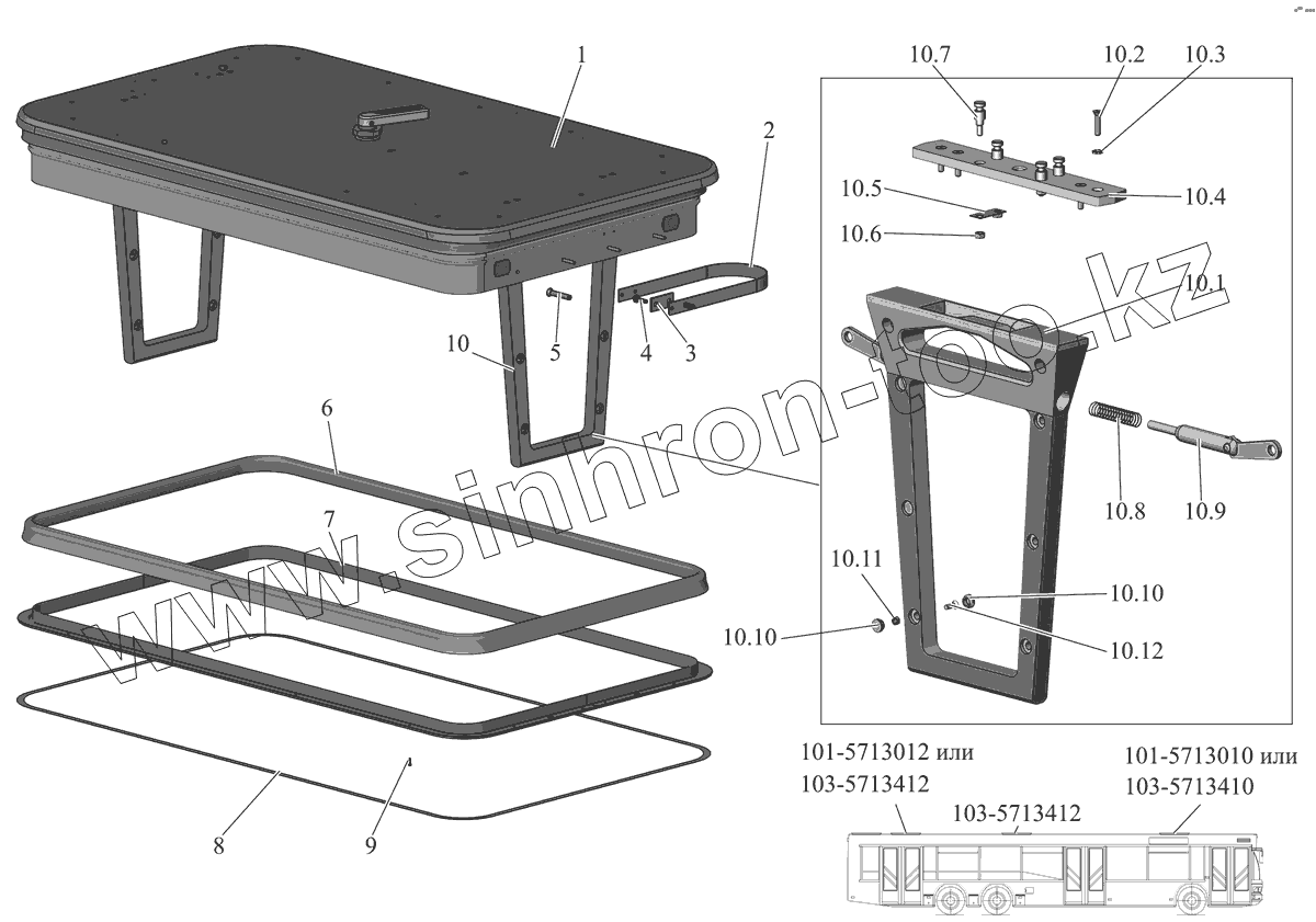 Каталог запасных частей к технике: АМАЗ МАЗ-107 (2011). Установка люков аварийных и вентеляционных 101-5713003