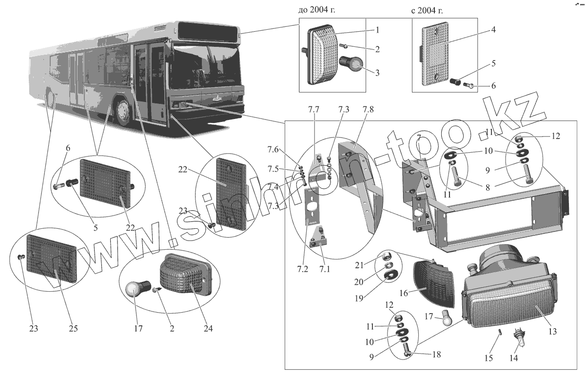 Каталог запасных частей к технике: АМАЗ МАЗ-107 (2011). Установка наружной светотехники