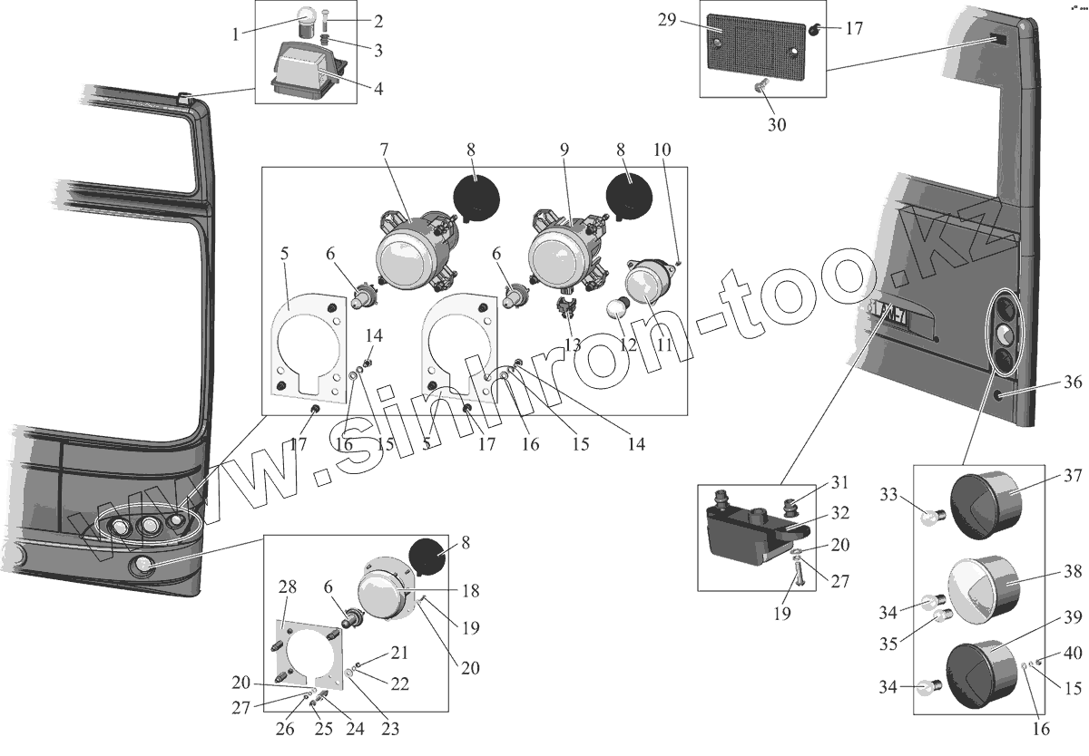 Каталог запасных частей к технике: АМАЗ МАЗ-107 (2011). Установка наружной светотехники на МАЗ 107400