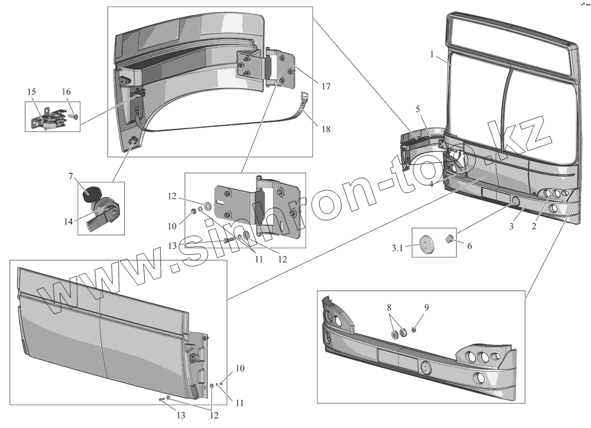 Расположение крышек и решеток на кузове МАЗ 107