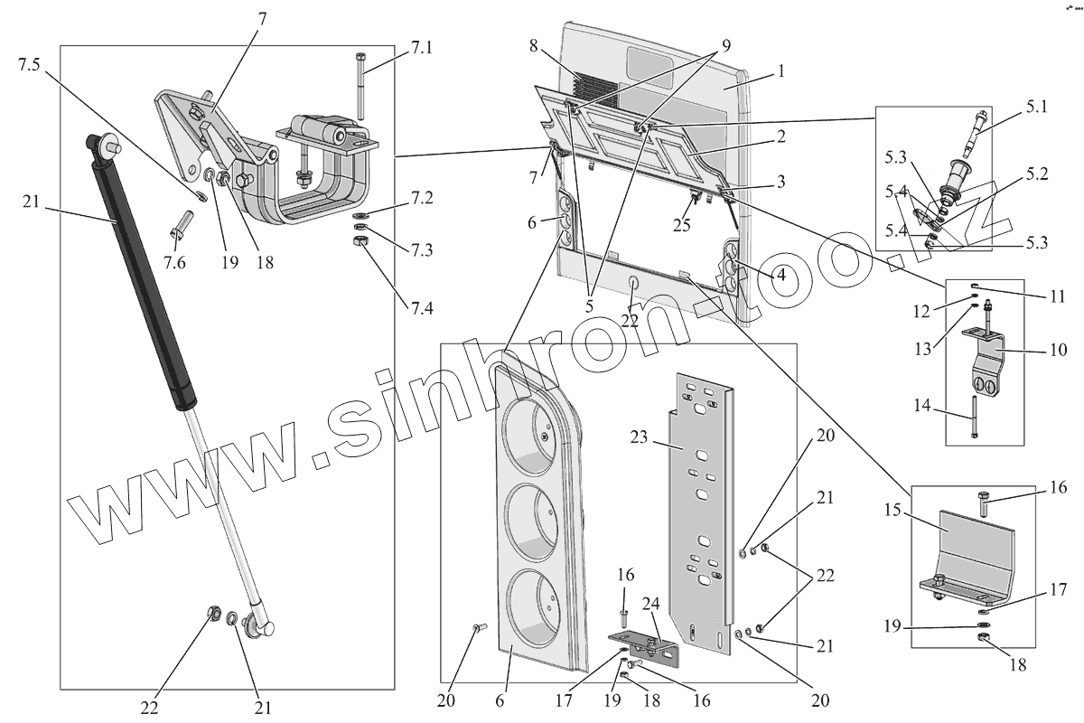 Каталог запасных частей к технике: АМАЗ МАЗ-107 (2011). Установка облицовки задка на МАЗ 107400