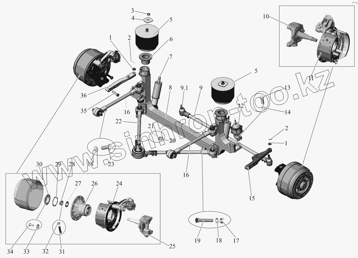 Каталог запасных частей к технике: АМАЗ МАЗ-107 (2011). Установка подвески задней дополнительной оси 107-2900003