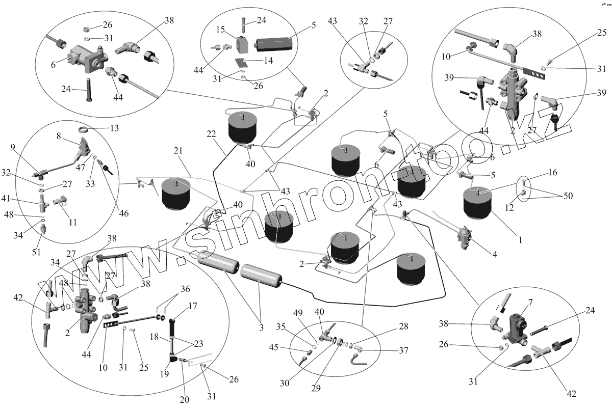 Каталог запасных частей к технике: АМАЗ МАЗ-107 (2011). Установка трубопроводов пневмоподвески 107-2900018