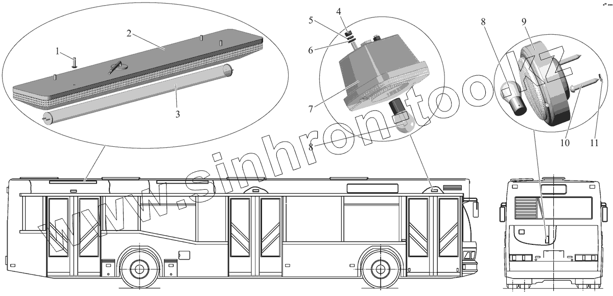 Каталог запасных частей к технике: АМАЗ МАЗ-107 (2011). Установка внутренней светотехники
