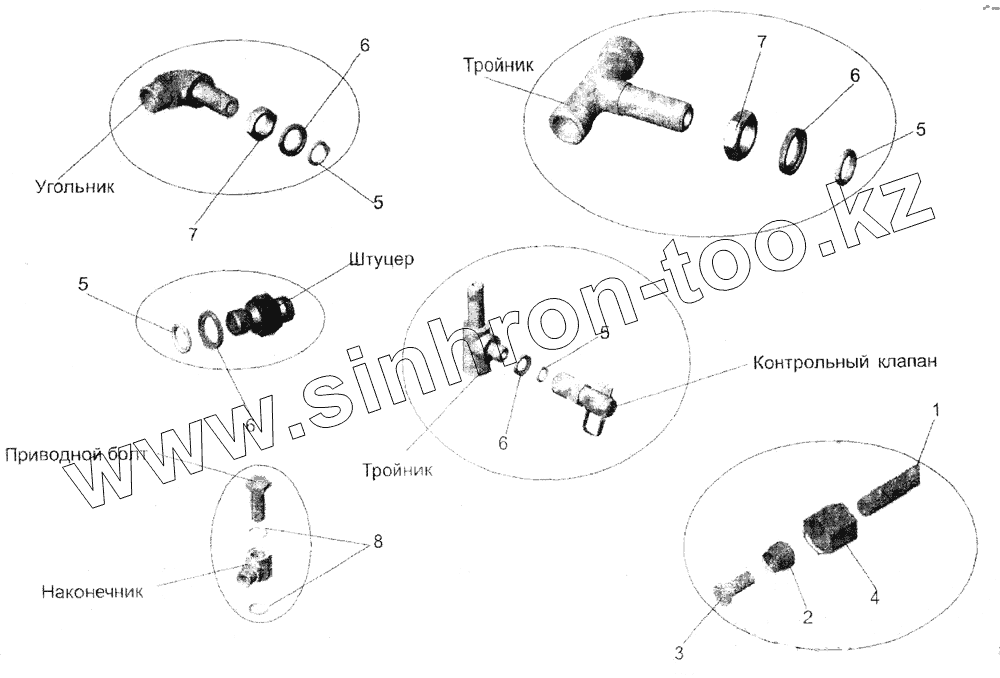 Каталог запасных частей к технике: АМАЗ МАЗ-152. Соединения пневматические