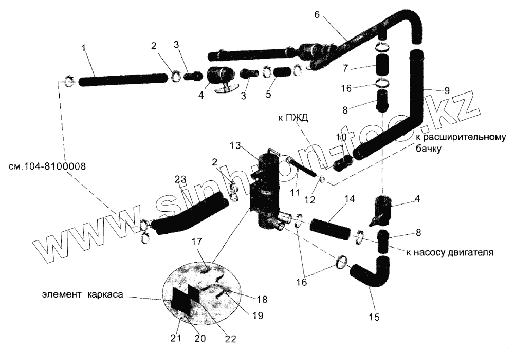 Каталог запасных частей к технике: АМАЗ МАЗ-152. Установка системы отопления моторного отсека