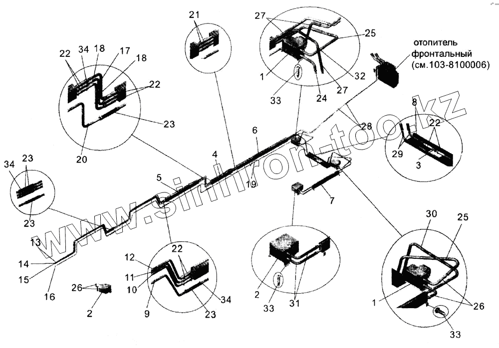 Каталог запасных частей к технике: АМАЗ МАЗ-152. Установка системы топления в салоне