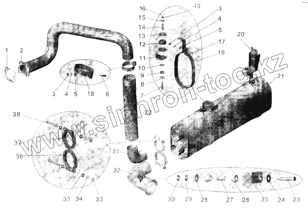 Каталог запасных частей к технике: АМАЗ МАЗ-152. Установка системы выпуска отработавших газов