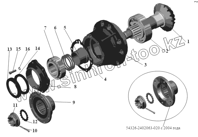 Каталог запасных частей к технике: АМАЗ МАЗ-152 (2011). Шестерня ведущая 104-2402021-20