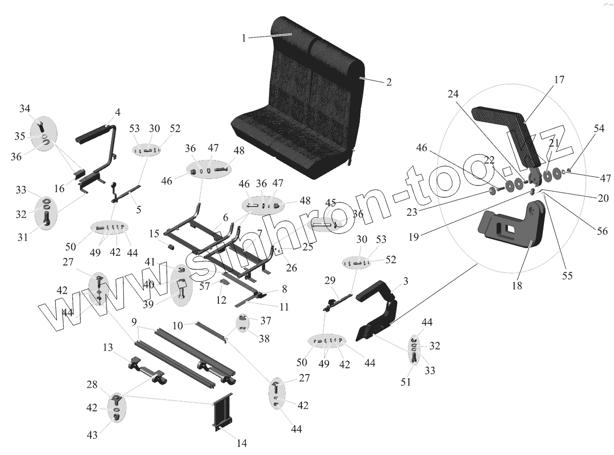 Каталог запасных частей к технике: АМАЗ МАЗ-152 (2011). Сиденье двухместное 151-6840010