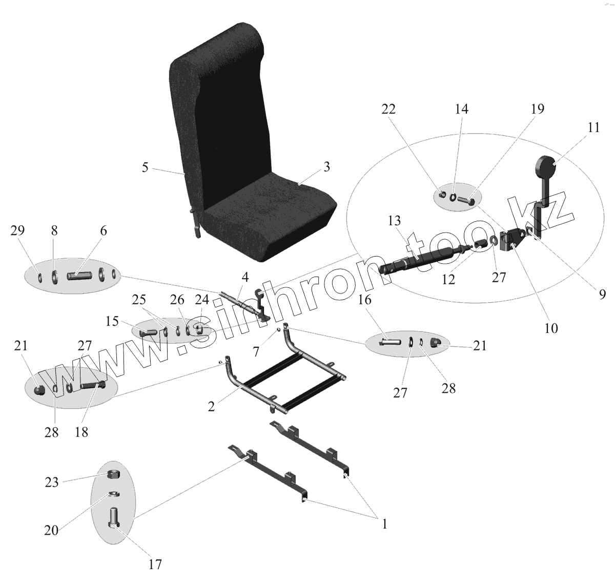 Каталог запасных частей к технике: АМАЗ МАЗ-152 (2011). Сиденье одноместное 151-6830010
