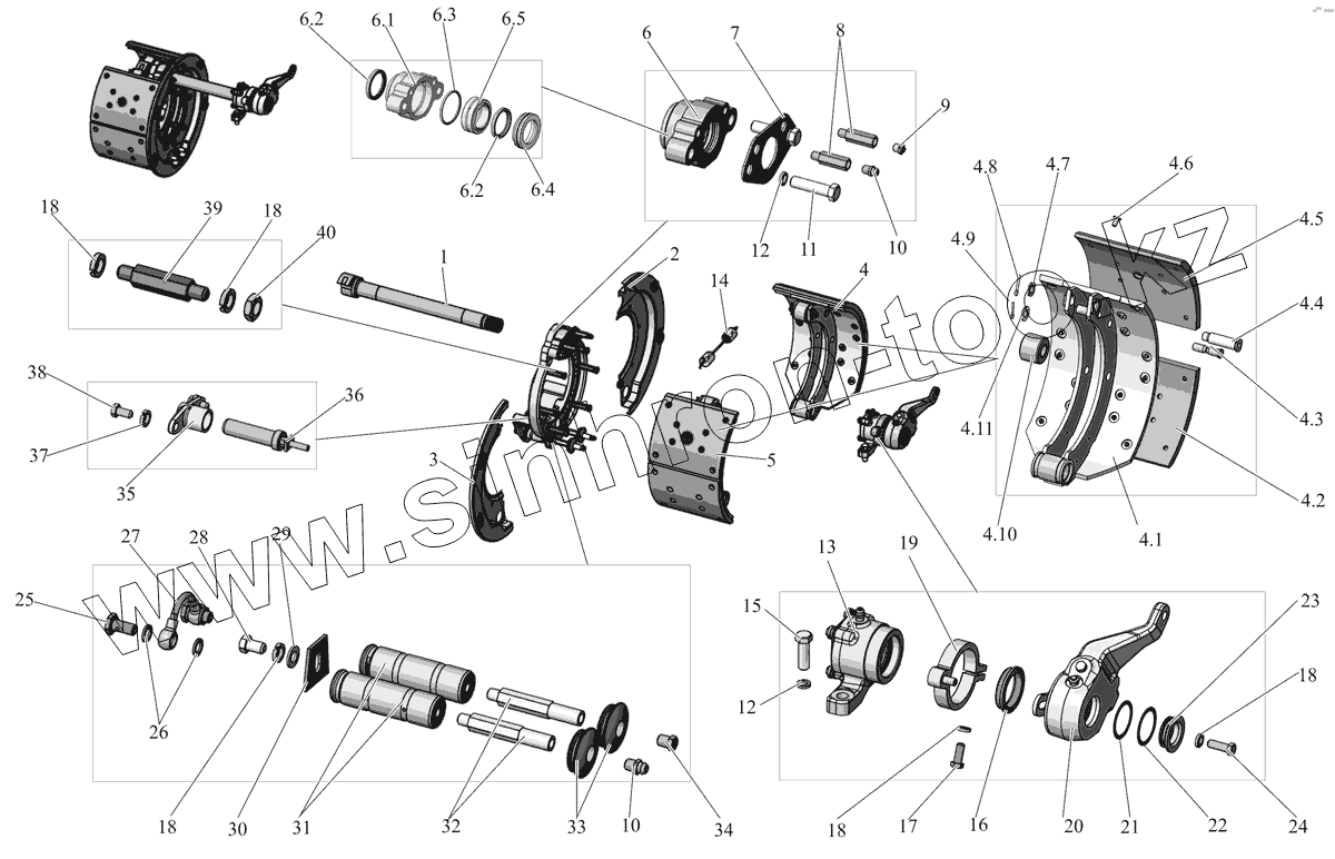 Каталог запасных частей к технике: АМАЗ МАЗ-152 (2011). Тормозной механизм ведущего моста (правый)
