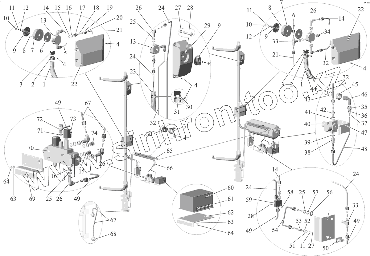 Каталог запасных частей к технике: АМАЗ МАЗ-152 (2011). Установка пневмоаппаратуры 152-6100011-10