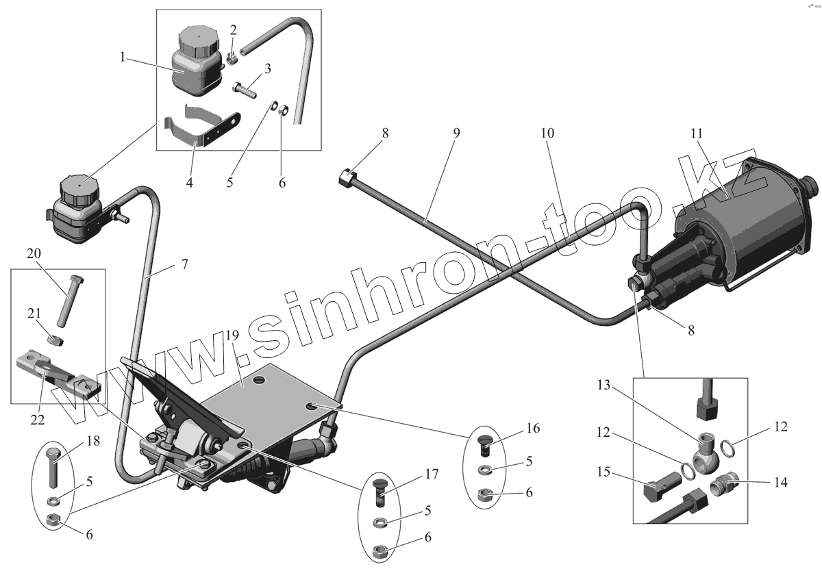 Каталог запасных частей к технике: АМАЗ МАЗ-152 (2011). Установка привода управления сцеплением 152-1602002-50