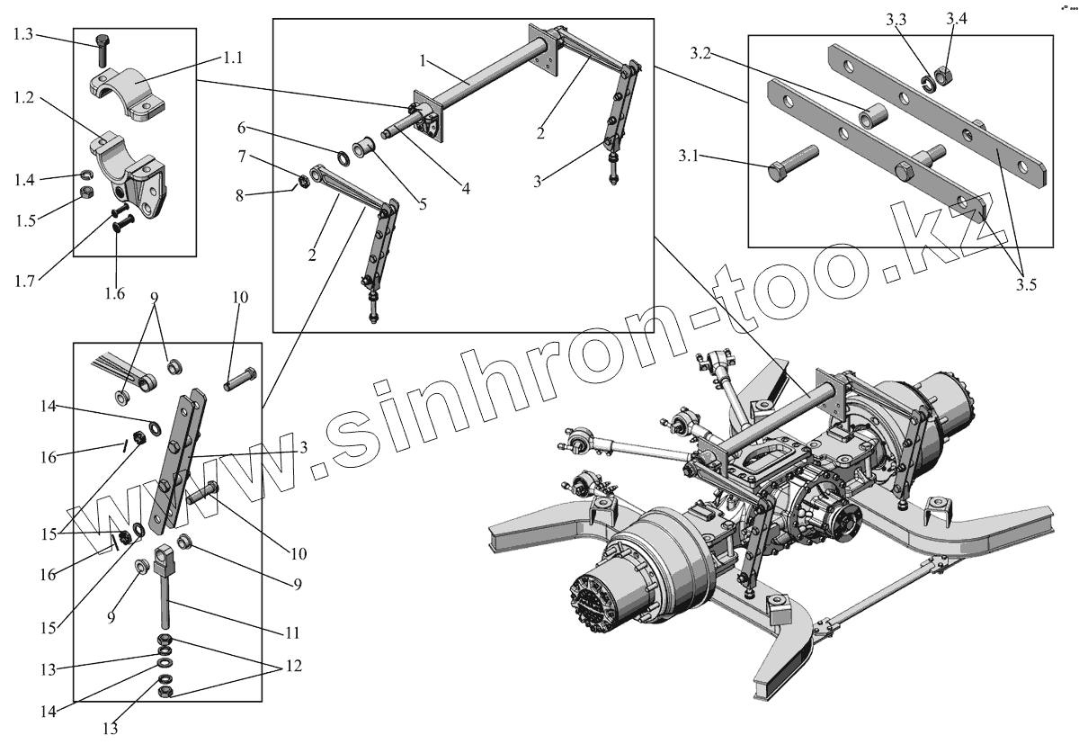 Каталог запасных частей к технике: АМАЗ МАЗ-152 (2011). Установка стабилизатора 152-2916001
