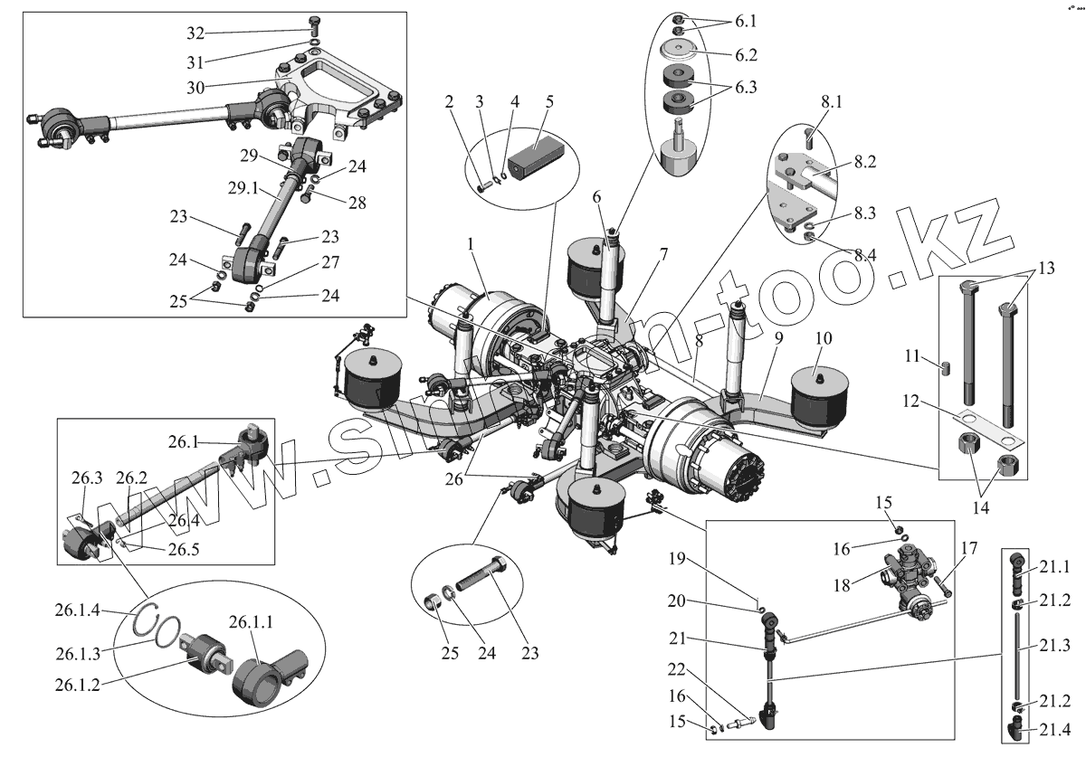 Каталог запасных частей к технике: АМАЗ МАЗ-152 (2011). Установка задней подвески 152-2900002