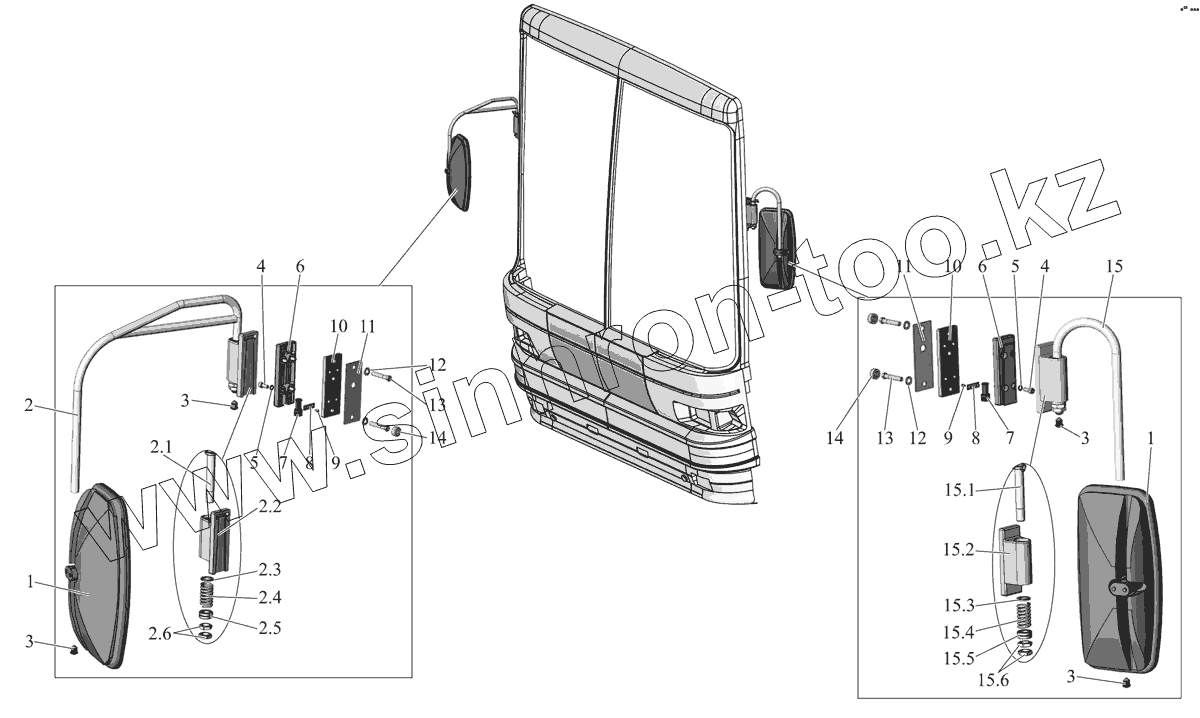 Каталог запасных частей к технике: АМАЗ МАЗ-152 (2011). Установка зеркал (с 2008 года)