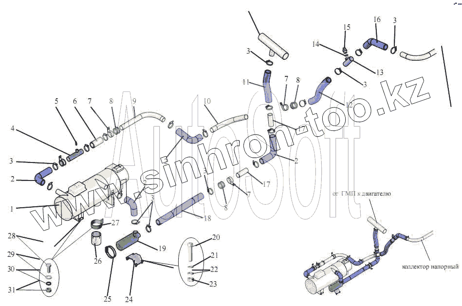Каталог запасных частей к технике: АМАЗ МАЗ-203. Установка подогревателя
