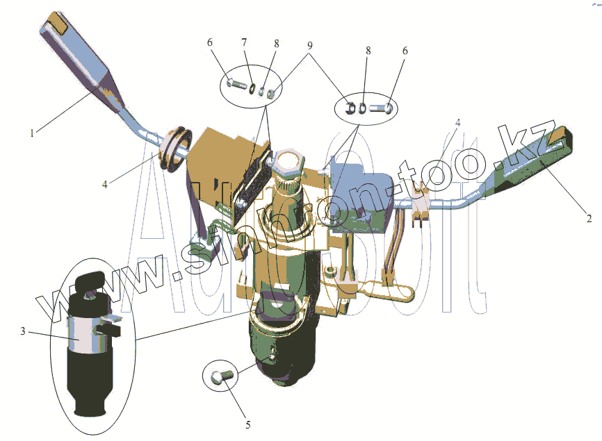 Каталог запасных частей к технике: АМАЗ МАЗ-203. Установка подрулевых переключателей и замка зажигания