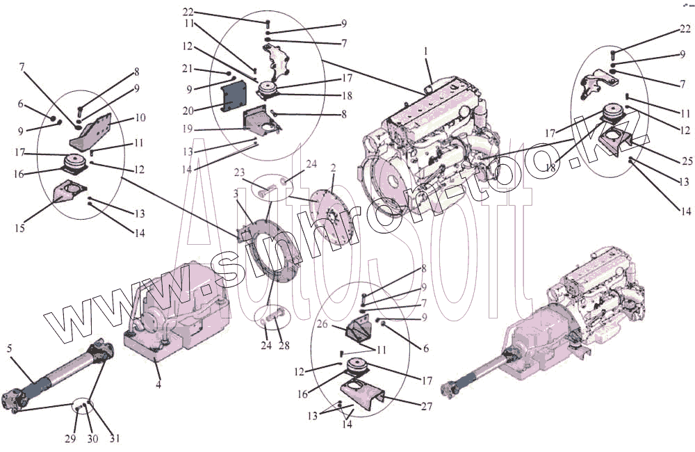 Каталог запасных частей к технике: АМАЗ МАЗ-203. Установка силового агрегата и карданного вала