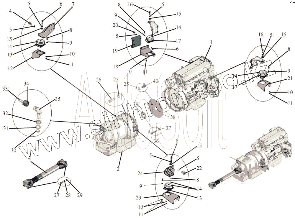 Каталог запасных частей к технике: АМАЗ МАЗ-203. Установка силового агрегата и карданного вала