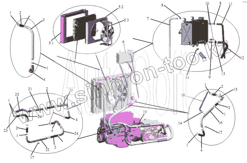 Каталог запасных частей к технике: АМАЗ МАЗ-203. Установка системы охлаждения