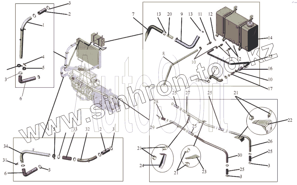 Каталог запасных частей к технике: АМАЗ МАЗ-203. Установка системы охлаждения