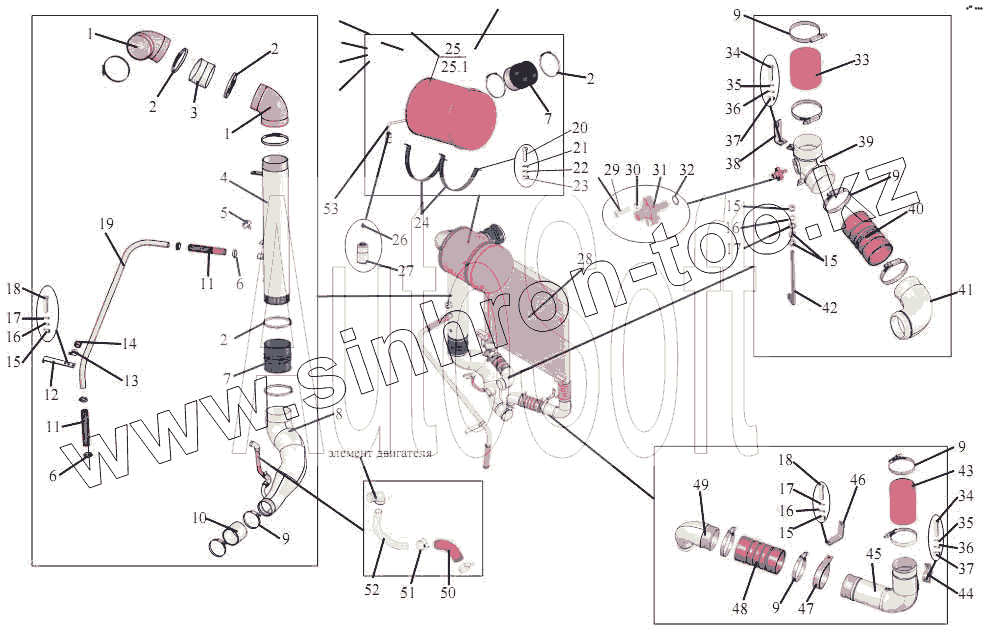 Каталог запасных частей к технике: АМАЗ МАЗ-203. Установка воздухоочистителя и охладителя наддува
