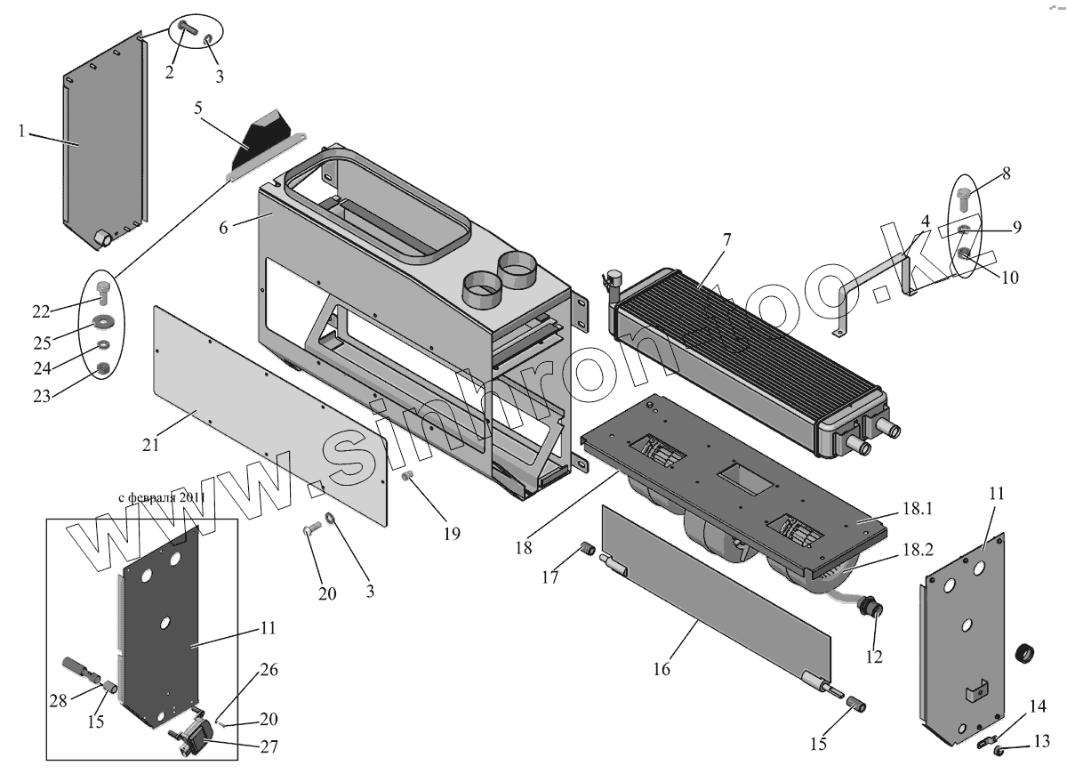 Каталог запасных частей к технике: АМАЗ МАЗ-206/226. Фронтальный отопитель