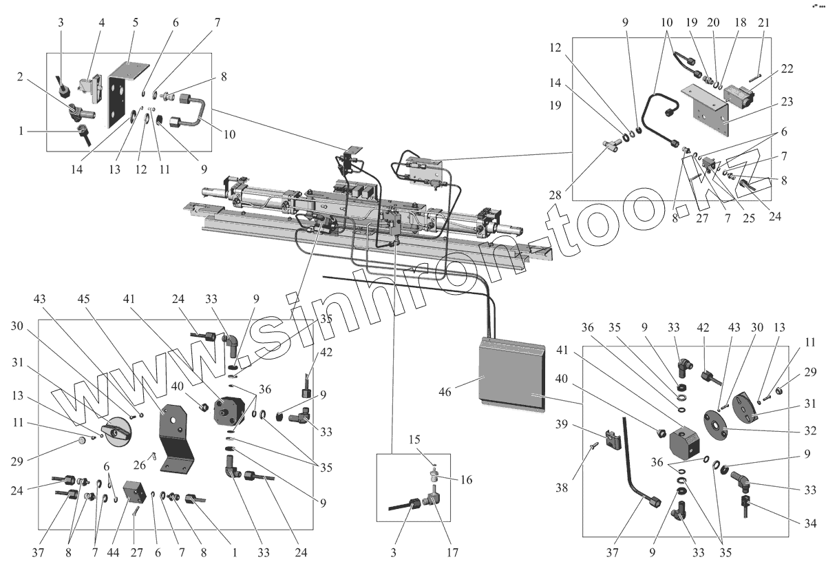 Каталог запасных частей к технике: АМАЗ МАЗ-206/226. Пневмоаппаратура дверей (задняя дверь) 203065-6100011