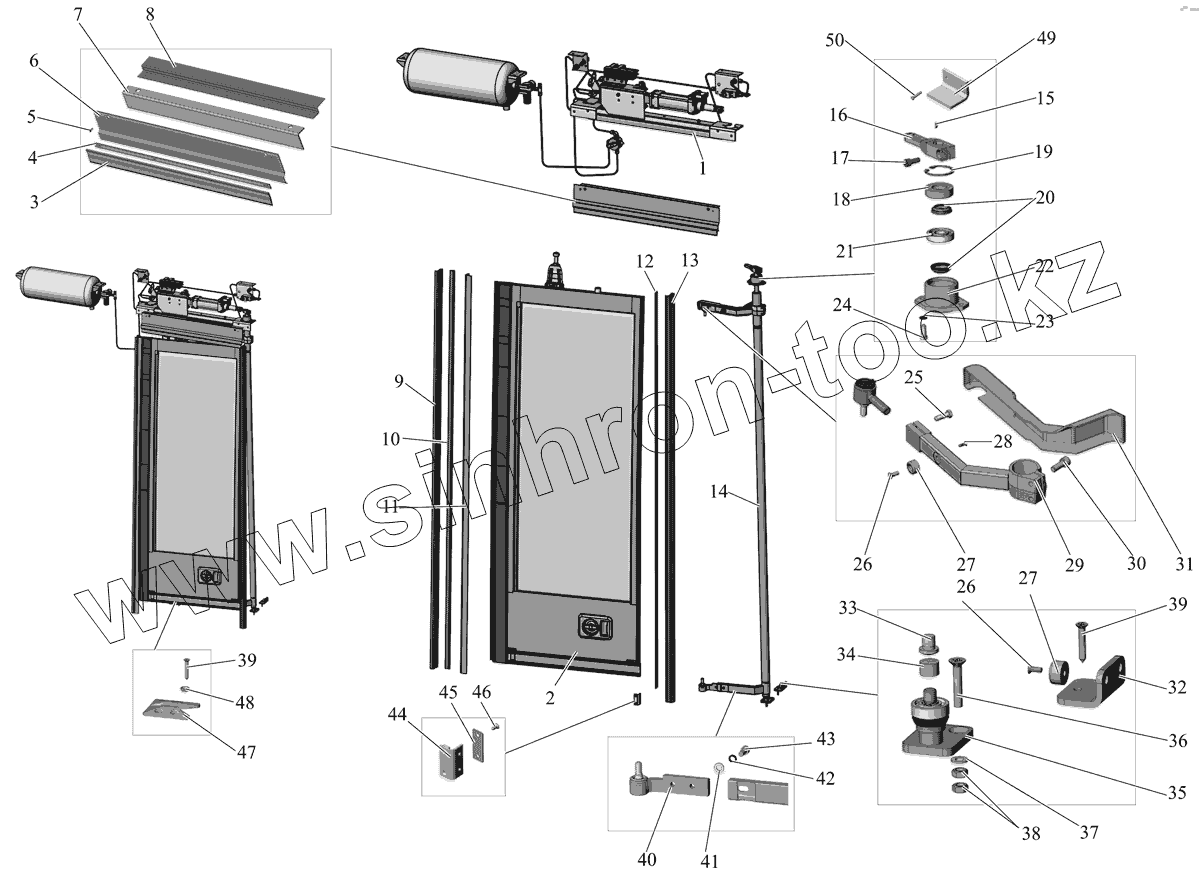 Каталог запасных частей к технике: АМАЗ МАЗ-206/226. Установка дверей (передняя дверь) 206060-6100003