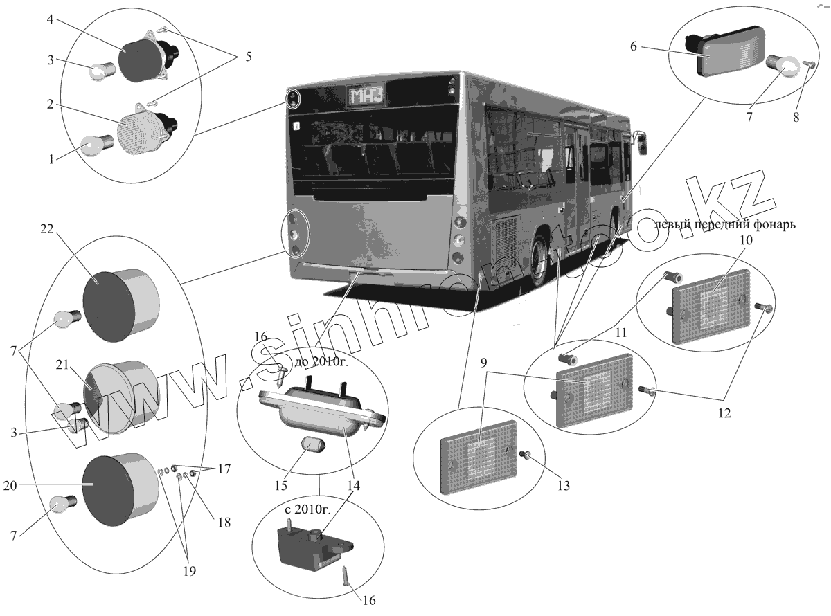 Каталог запасных частей к технике: АМАЗ МАЗ-206/226. Установка наружной светотехники