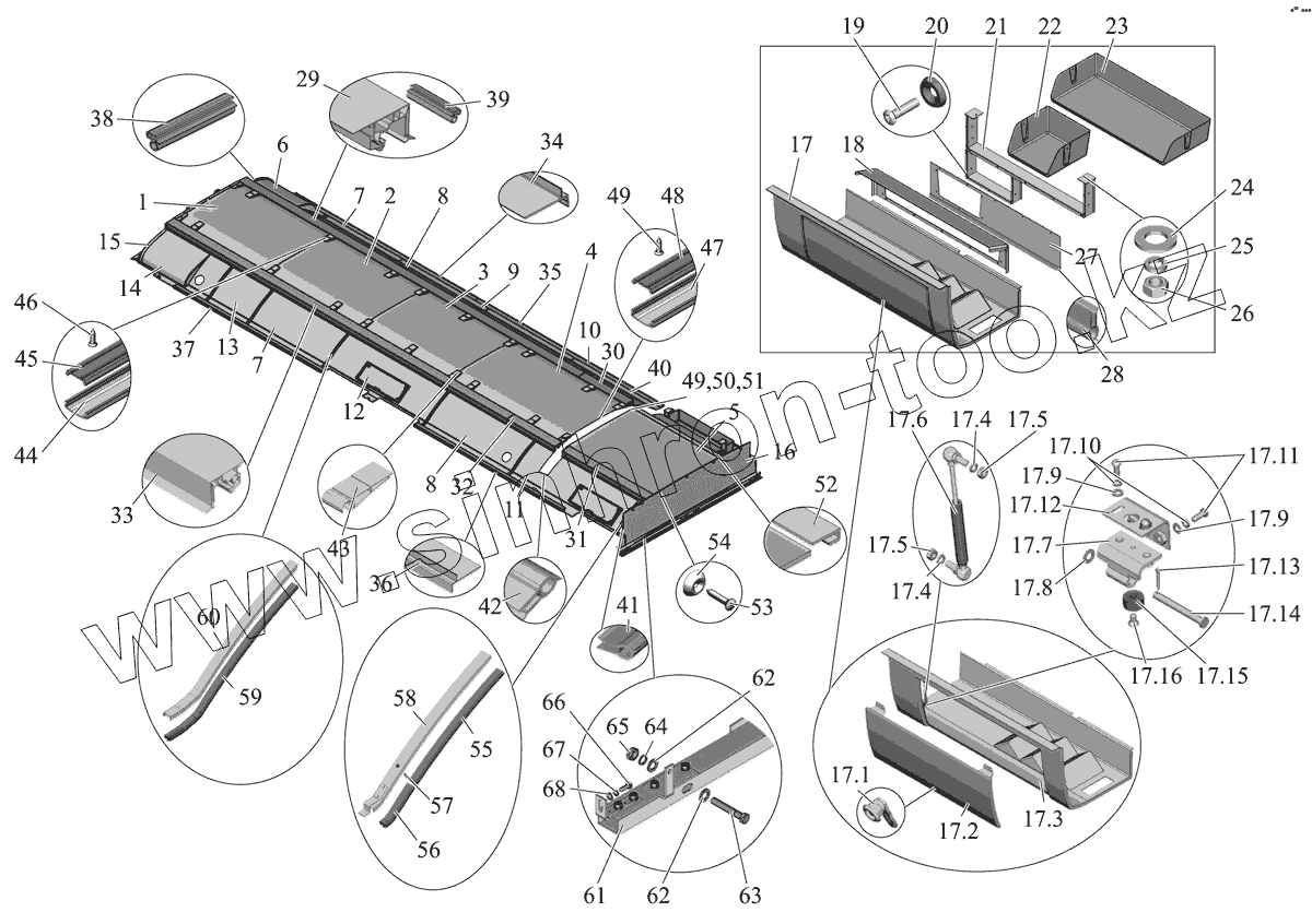 Каталог запасных частей к технике: АМАЗ МАЗ-206/226. Установка панелей потолка (206060-5700030-40)
