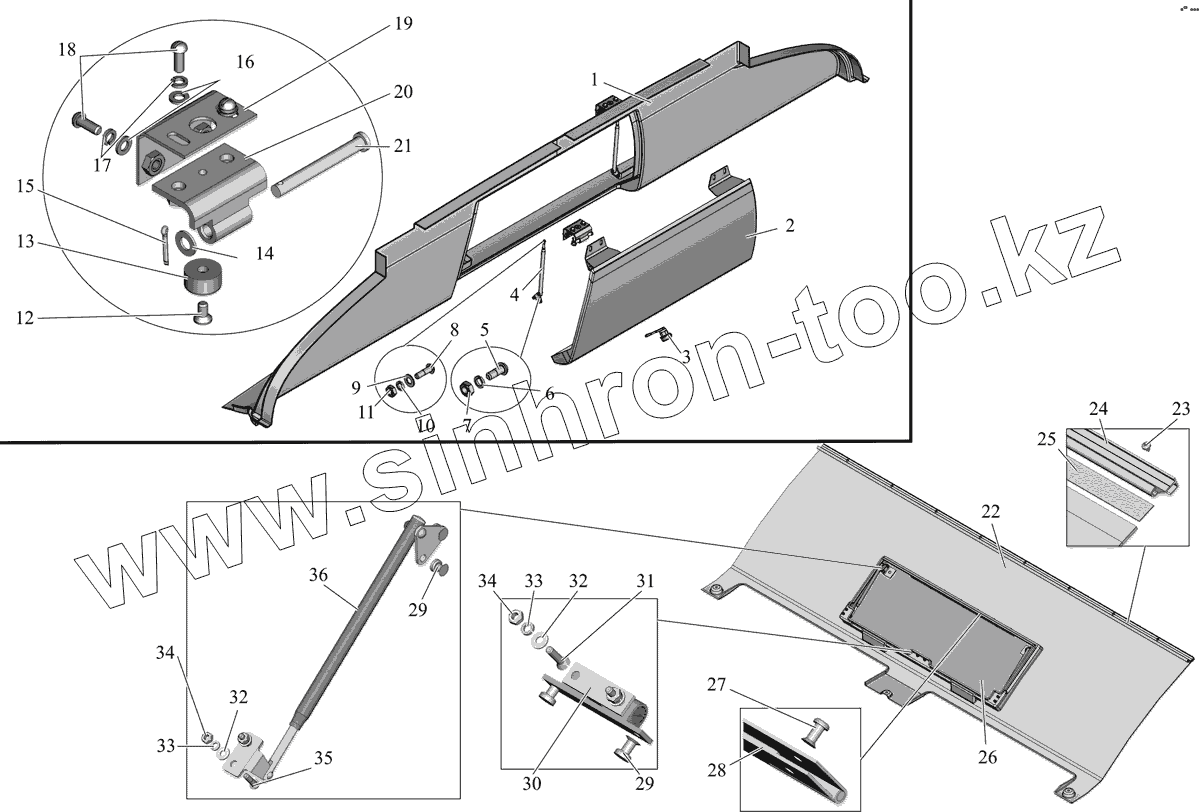 Каталог запасных частей к технике: АМАЗ МАЗ-206/226. Установка панелей потолка (206060-5700030-40)