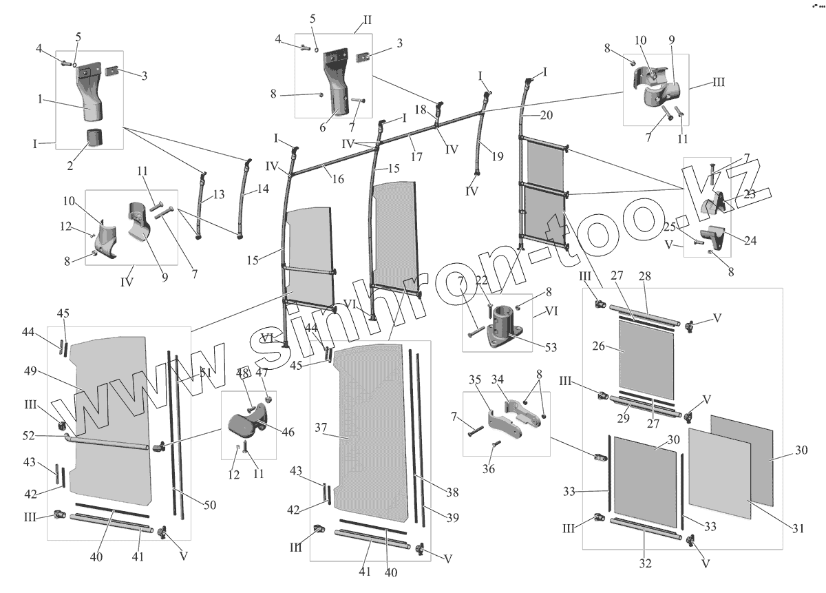 Каталог запасных частей к технике: АМАЗ МАЗ-206/226. Установка поручней (справа) 206060-7811010