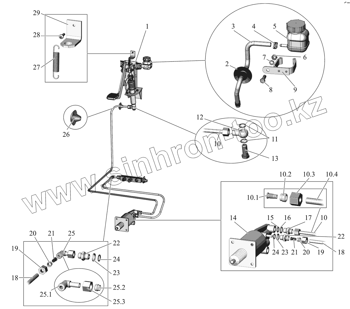 Каталог запасных частей к технике: АМАЗ МАЗ-206/226. Установка привода управления сцеплением 206060-1602002