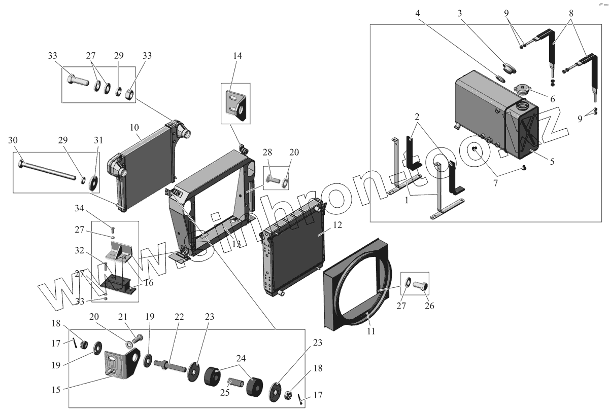 Каталог запасных частей к технике: АМАЗ МАЗ-206/226. Установка радиаторов и расширительного бачка
