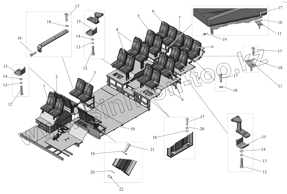 Каталог запасных частей к технике: АМАЗ МАЗ-206/226. Установка сидений 206060-6830006